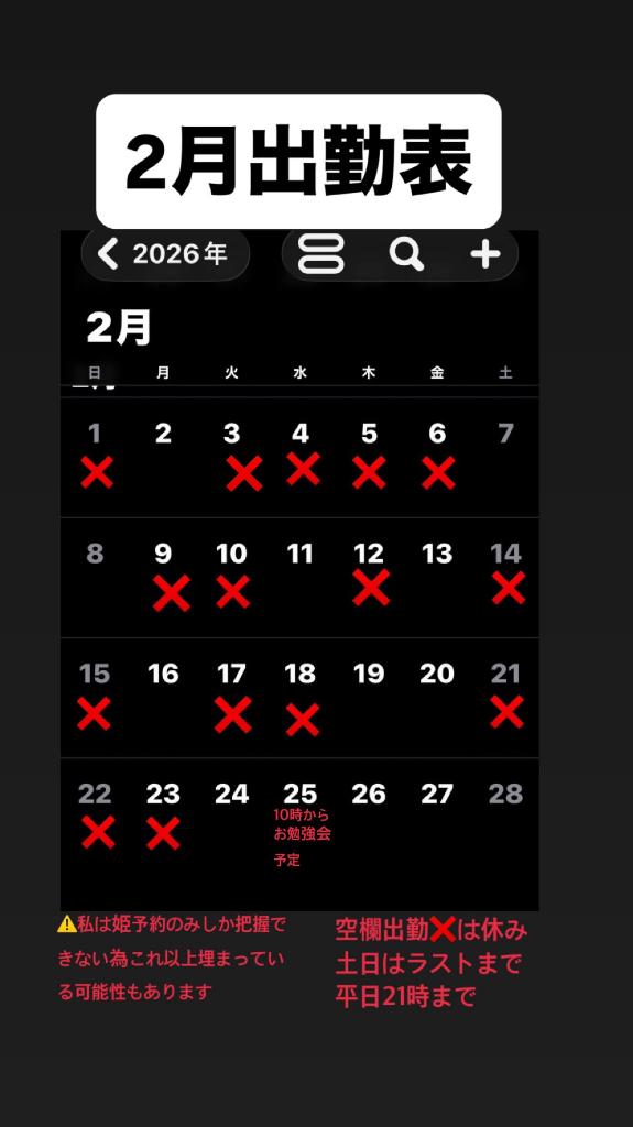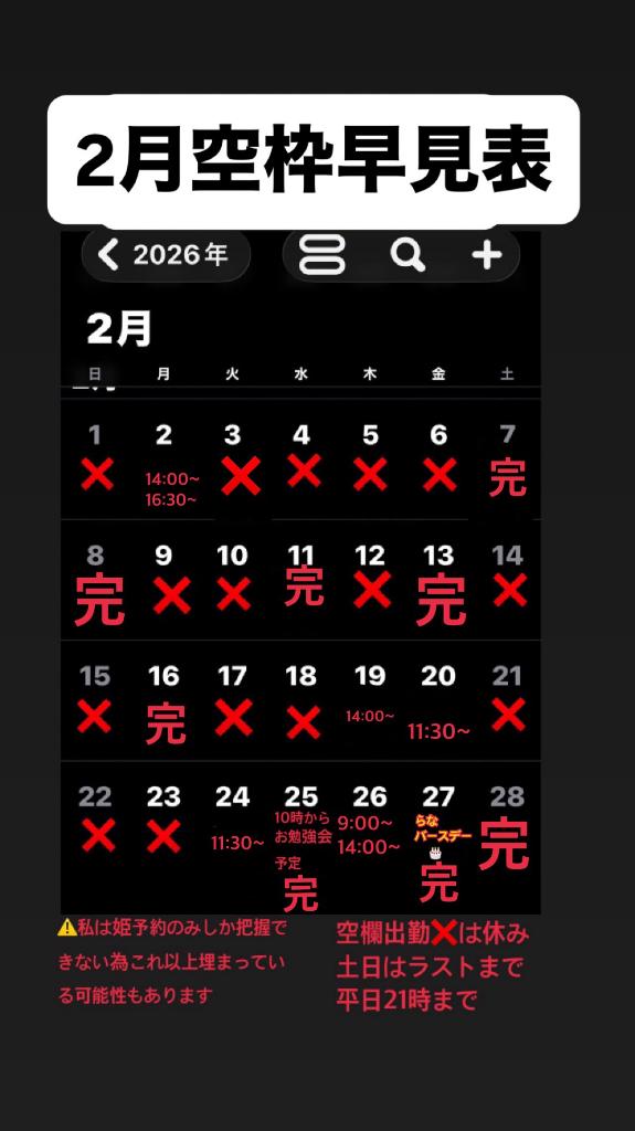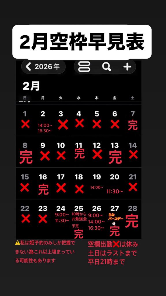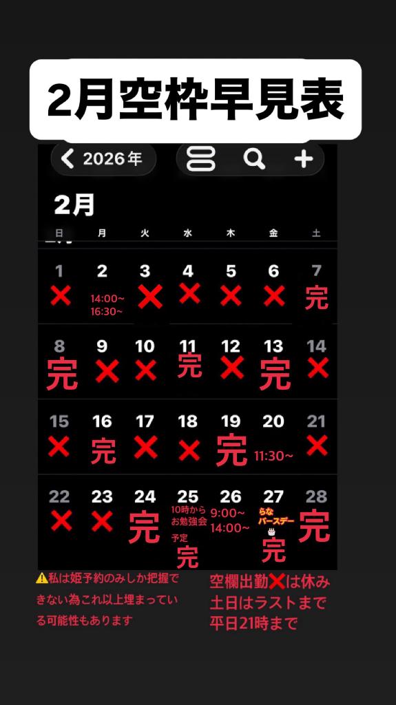 RANA/らな centu 21歳 2月シフト空き枠 01/22 14:21